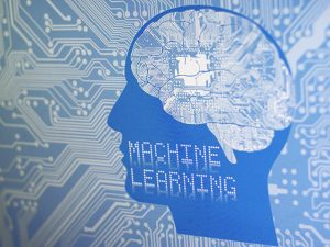 प्रौद्योगिकी और इंजीनियरिंग अवधारणा के साथ मशीन लर्निंग। मानव मस्तिष्क (प्रोफाइल) एक सर्किट ब्रेन बोर्ड के अंदर और मशीन लर्निंग लोगो के साथ। चयनात्मक ध्यान