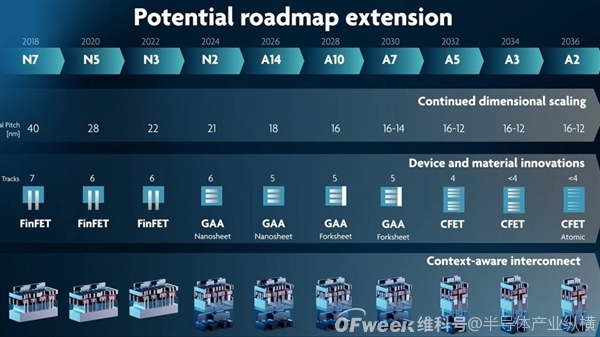 IMEC (बेल्जियम माइक्रोइलेक्ट्रॉनिक्स सेंटर) द्वारा योजनाबद्ध विकास रोडमैप के अनुसार, यह 2028 में 1NM प्रक्रिया प्रौद्योगिकी, 2030 में A7 (0.7NM) और क्रमशः A5, A3, और A2 प्रक्रियाओं के बड़े पैमाने पर उत्पादन प्राप्त करने की उम्मीद है।