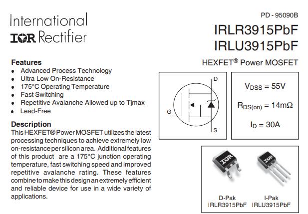 घरसमाचारIRLU3915PBF HEXFET® पावर MOSFET 55V सिंगल एन-चैनल हेक्सफेट पावर MOSFET I-PAK पैकेज में